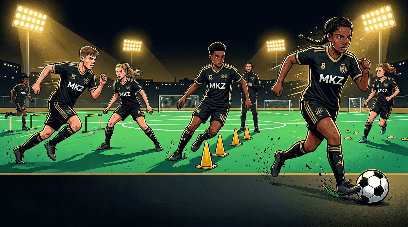 MKZ Soccer Academy develops players aged 5–15+ with elite coaching from semi-professionals playing at Melbourne Victory and West End United. Modern sessions. Real pathways. Serious fun.